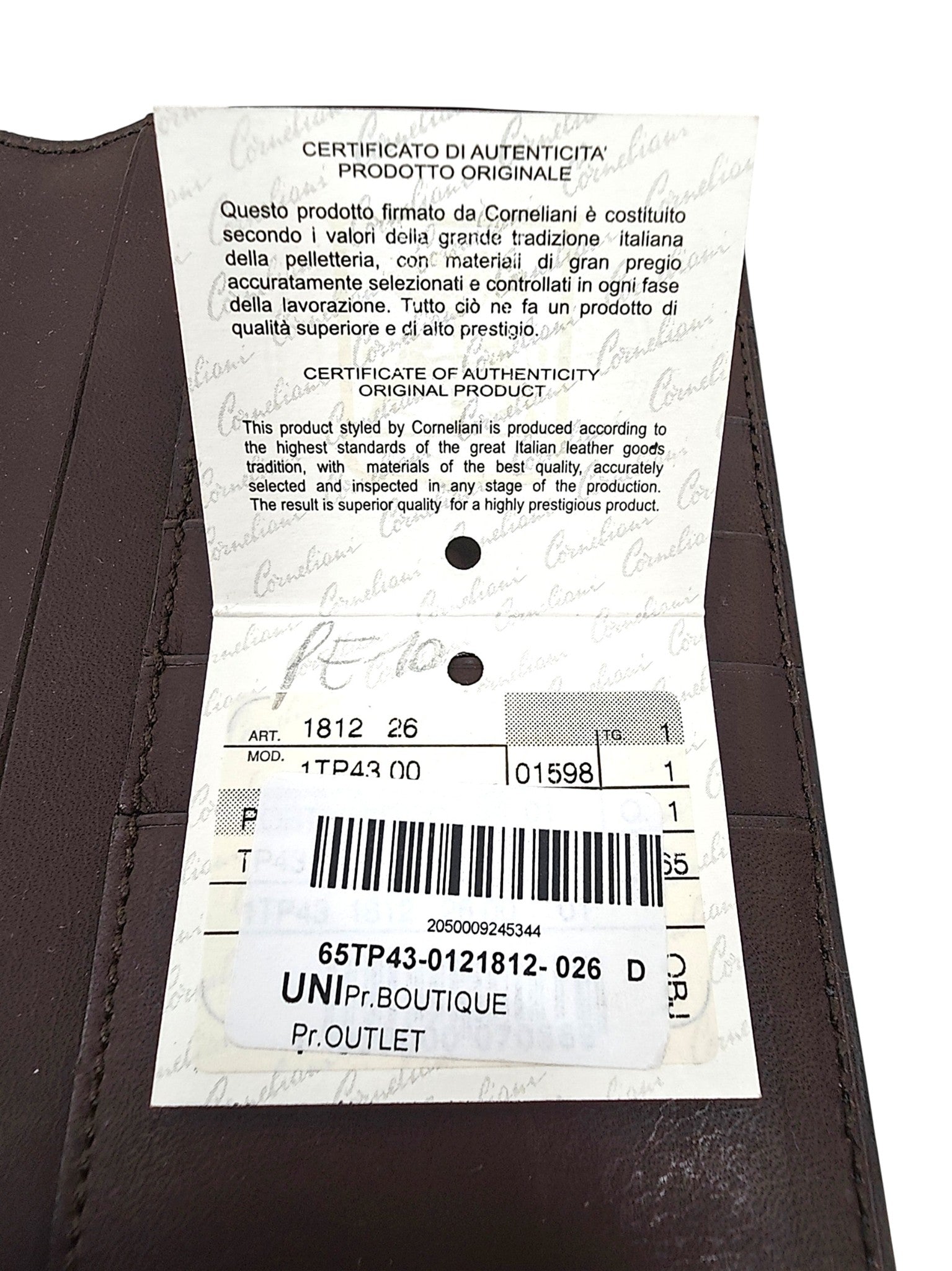 Wallet by Corneliani with brown interior.